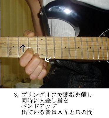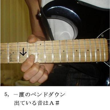 このフレーズは 「ビコーズ オブ ユー」※ のエンデイング ふたりのギターのかけあいの前(倍テンポになる前 CDカウンター5:03)に入っているフレーズです。 ダブルベンドは12音階にない音を出していたので トレモロアームを使っていると思われたり 雑誌の批評でインサイドラブは 「途中でギターが ミスをしている」 と書かれたりしました。 まちがえてないっちゆーの!