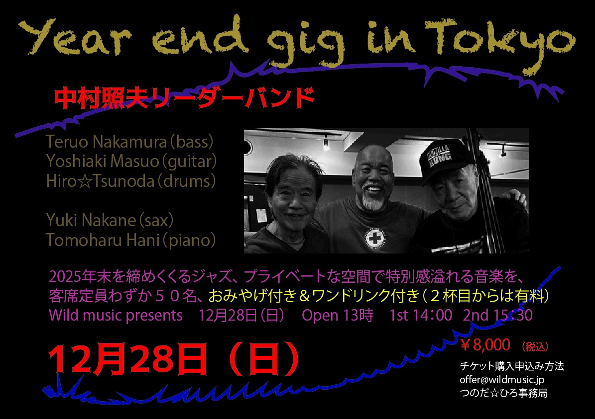 12月28日 (日) 文京区 ワイルドミュージックスクール内 中村照夫リーダーバンド Year end gig