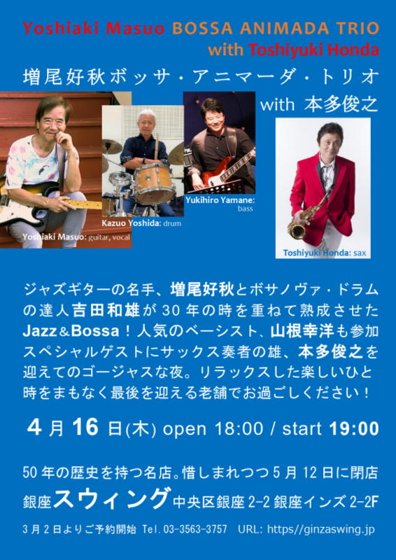 4月16日 (木) 銀座 Swing Tel:03-3563-3757 / 03-3564-1579